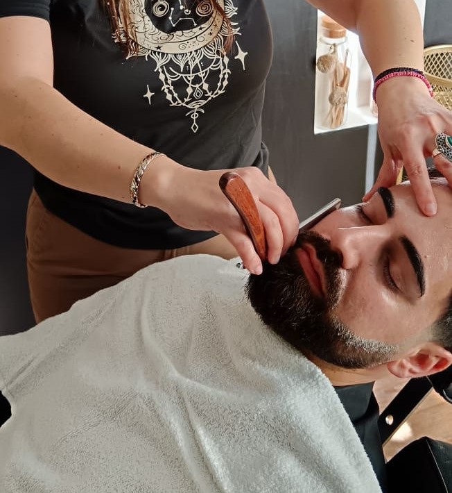 Beard trimming, shape up, beard cleansing, steam and oil beard treatment massage